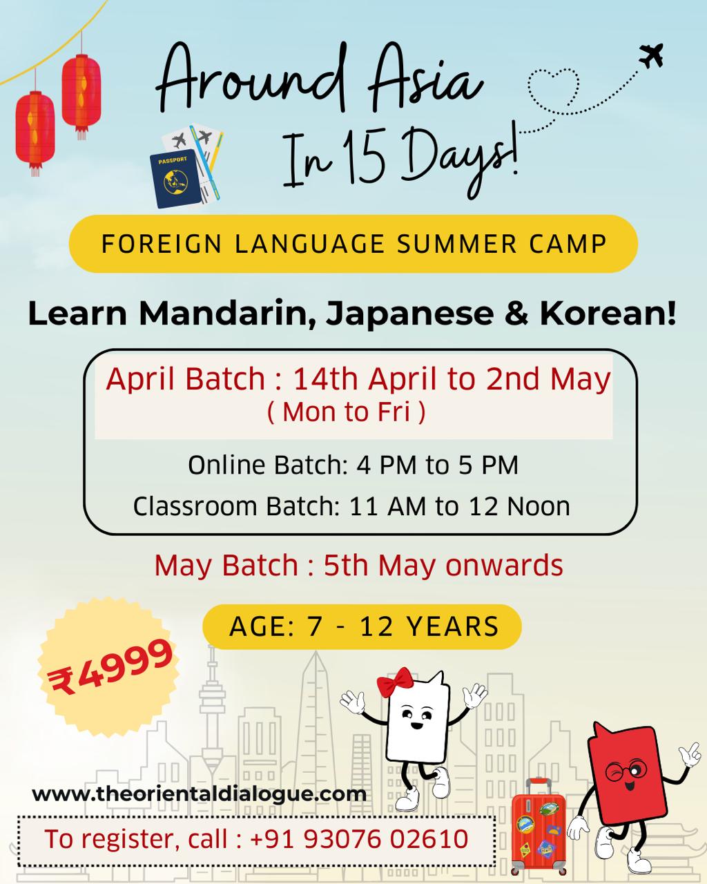 Are you looking for a unique and enriching summer experience for your child? Our Foreign Language Summer Camp—”Around Asia in 15 Days”—is designed to introduce kids to Mandarin, Japanese, and Korean in an engaging and interactive way!
