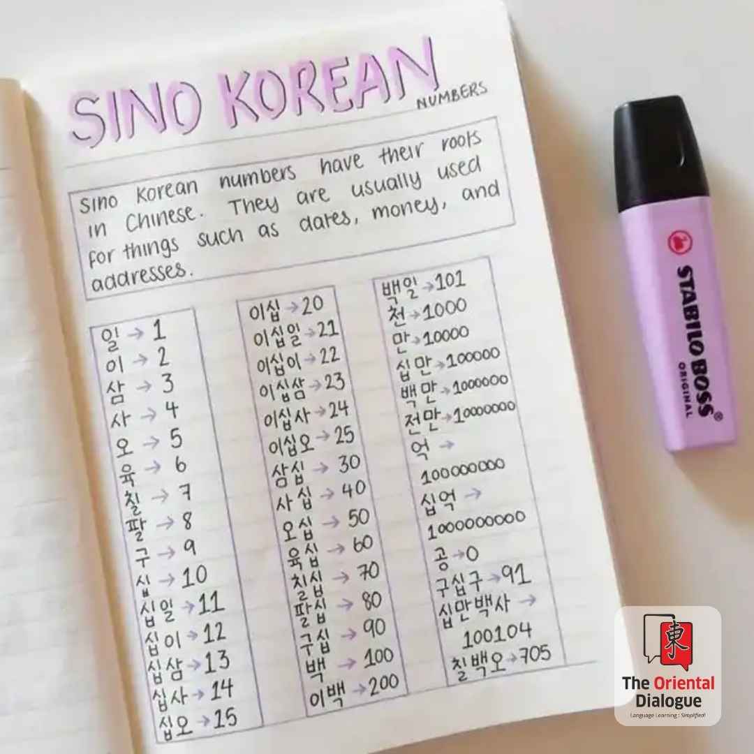 Sino-Korean numbers come from Chinese and are based on Chinese pronunciation. They are used in formal, mathematical, and official contexts.